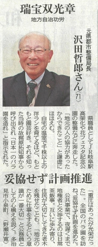 平成30年11月3日付けで発令された平成30年秋の叙勲で、弊社社長の澤田哲郎が「瑞宝双光章」を拝受しました。